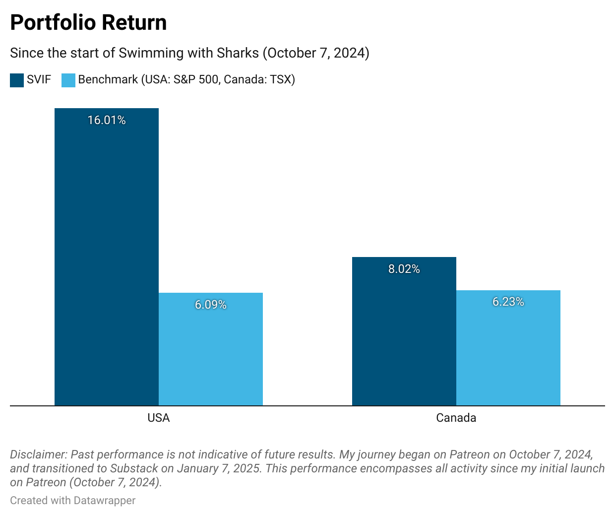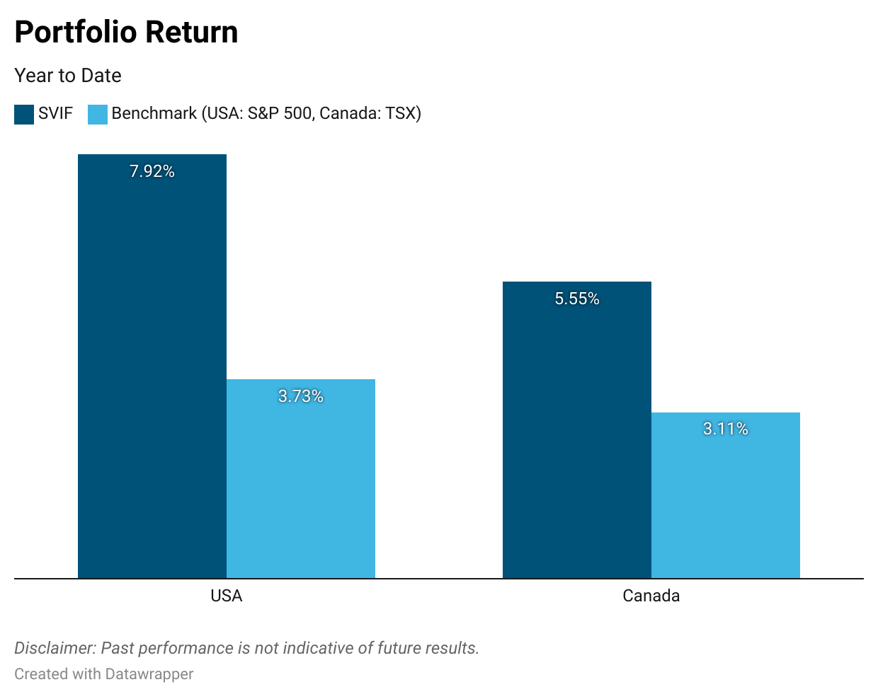 And since the launch of SwS, not only are both portfolios beating the market, but the USA portfolio returned 2.6x the benchmark.