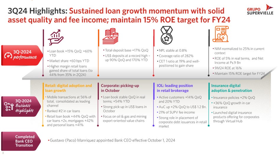 Grupo Supervielle’s shift toward private loans has proven successful. Over the past year, net loans shot up by 37%, mostly thanks to retail loans, with auto loans more than doubling.
