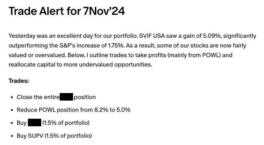 Trade Alert: Close SUPV position in the SVIF USA portfolio.
