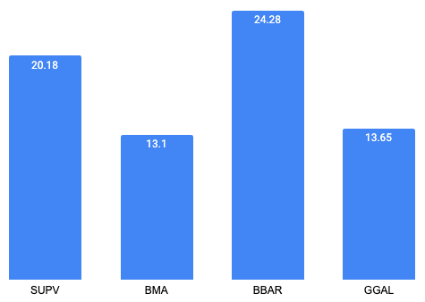 On a trailing P/E basis, SUPV appears slightly cheaper than BBAR.