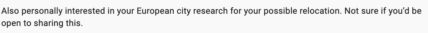 While we’ve been to many cities in Spain before, we were always in vacation mode. This time, we’re planning to visit 5–6 cities at the end of the year to assess how “liveable” each one is through the family lens. These are our finalist cities so far (let me know if you have suggestions):