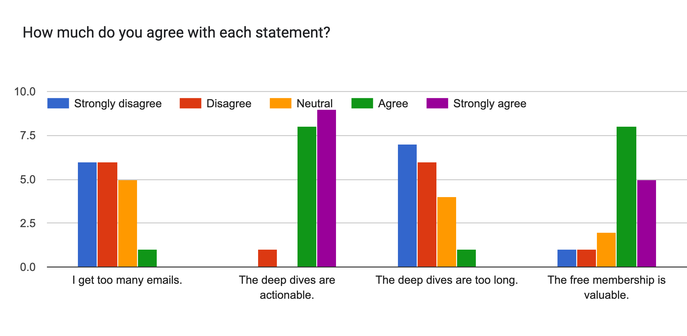 Most of you don’t think I send too many emails. You think the free membership is valuable, and that the deep dives are actionable. I was surprised that most of you think the deep dives are not long enough?!