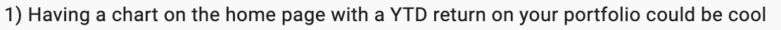 Right now, I am hosting the newsletter on Substack, so I don’t have full control over the look & feel of the website. But for now, I added the portfolio performance to the top navigation bar.