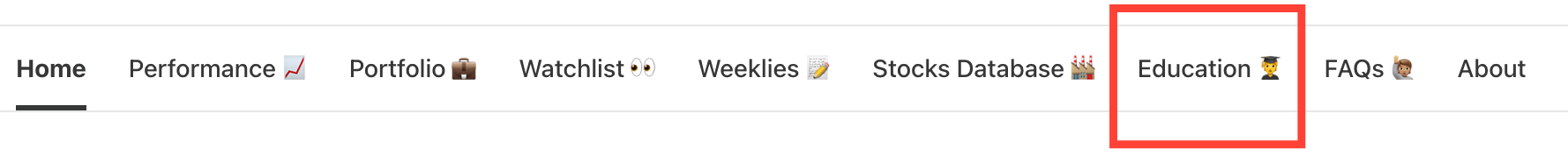 I eliminated the “Start Here” page and reallocated the Investment Philosophy and Monthly Investing Fundamentals to a new top tab called Education.