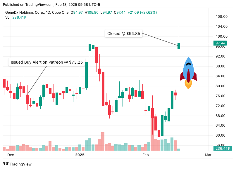Earlier today, WGS released earnings. The company reported strong Q4 2024 results, which caused the shares to gap on today’s opening. Revenue reached $95.3 million, up 64% year-over-year. Adjusted gross margin expanded to 70%, while adjusted net income came in at $16.8 million. Full-year 2024 revenue grew 56% to $302.3 million, driven by a 51% increase in exome and genome testing volume. The company maintains a solid cash position of $142.2 million.