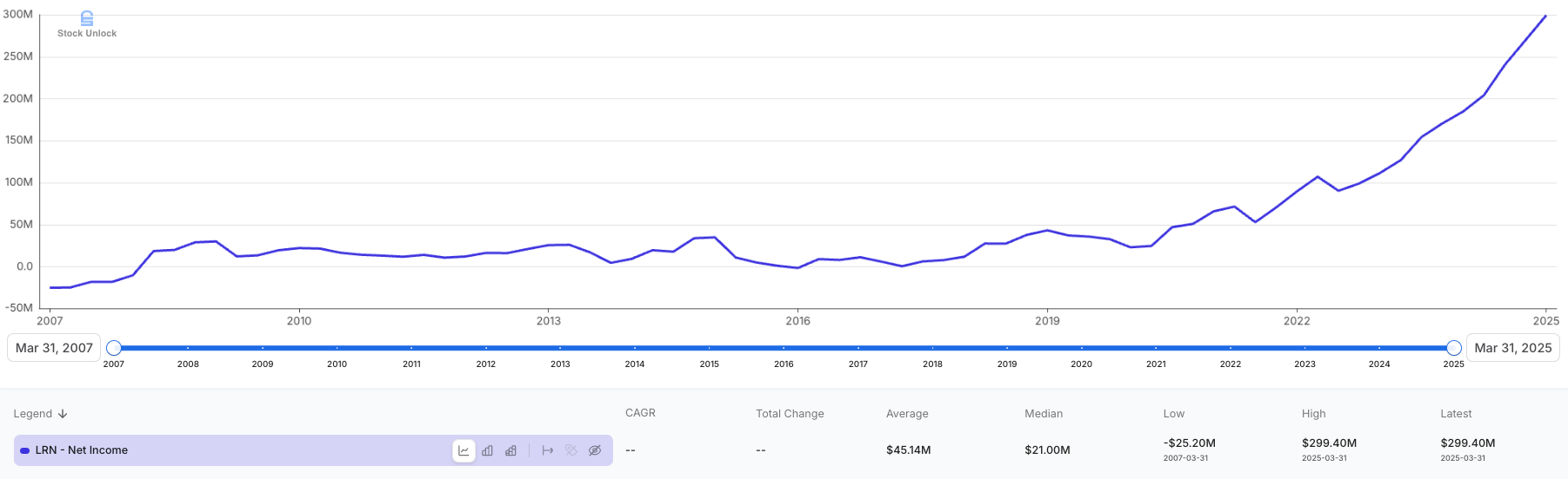 The transformation under current management means higher margins, strong cash flows, and a cash-rich balance sheet. Stride today is a profit machine compared to its past, enabling reinvestment and shareholder returns (potential buybacks/dividends ahead).