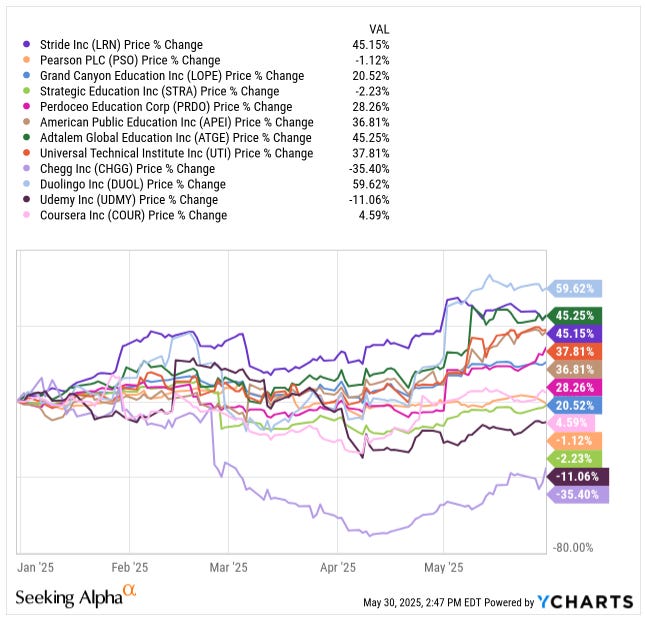 This was a fantastic write-up — I especially loved how you kicked things off with that example. Great lead in! I’m personally bullish on the education sector too, especially given how AI is about to reshape it. I think we’re heading toward a world where every student has their own personalized AI tutor.