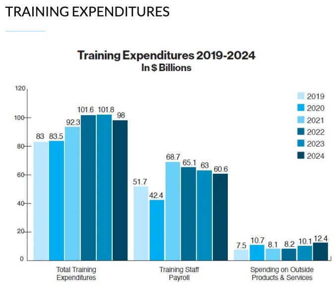 U.S. companies alone spend over $98 billion per year on employee training and development — a staggering figure that underscores how much ongoing education happens on the job.