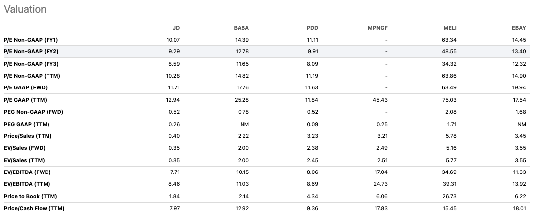 JD is currently undervalued relative to both its peers and its intrinsic value. On a relative basis, it is trading at a significant discount to its peers.